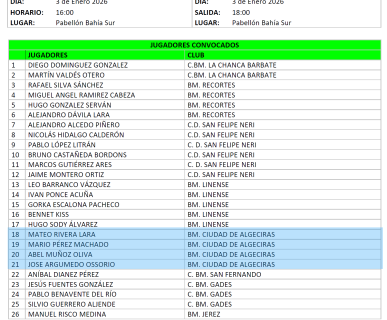 Adjunto convocatoria de la selección gaditana infantil promesas para el